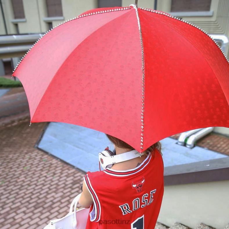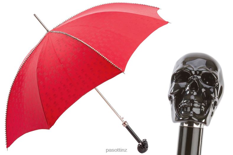 Red Umbrella with Studs andBlack Skull Handle