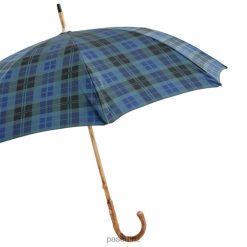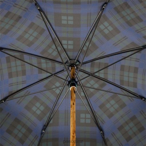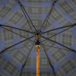 Blue Check Umbrella with Wooden Handle