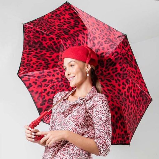 Red Leopard Print Umbrella, Double Cloth