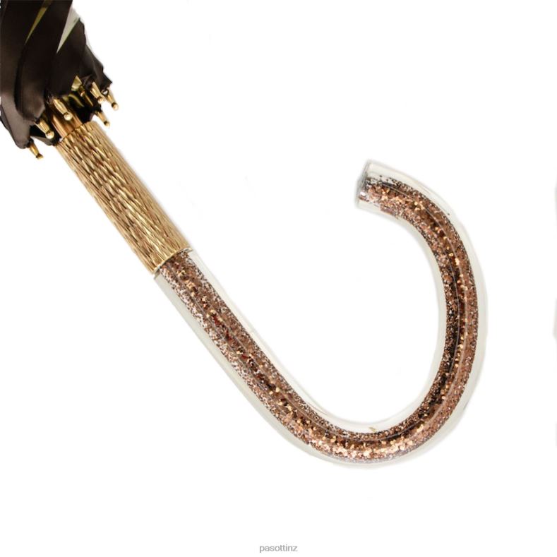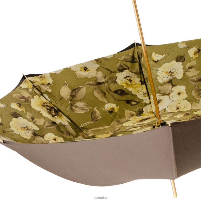 Khaki Umbrella with Flowers and Glitter