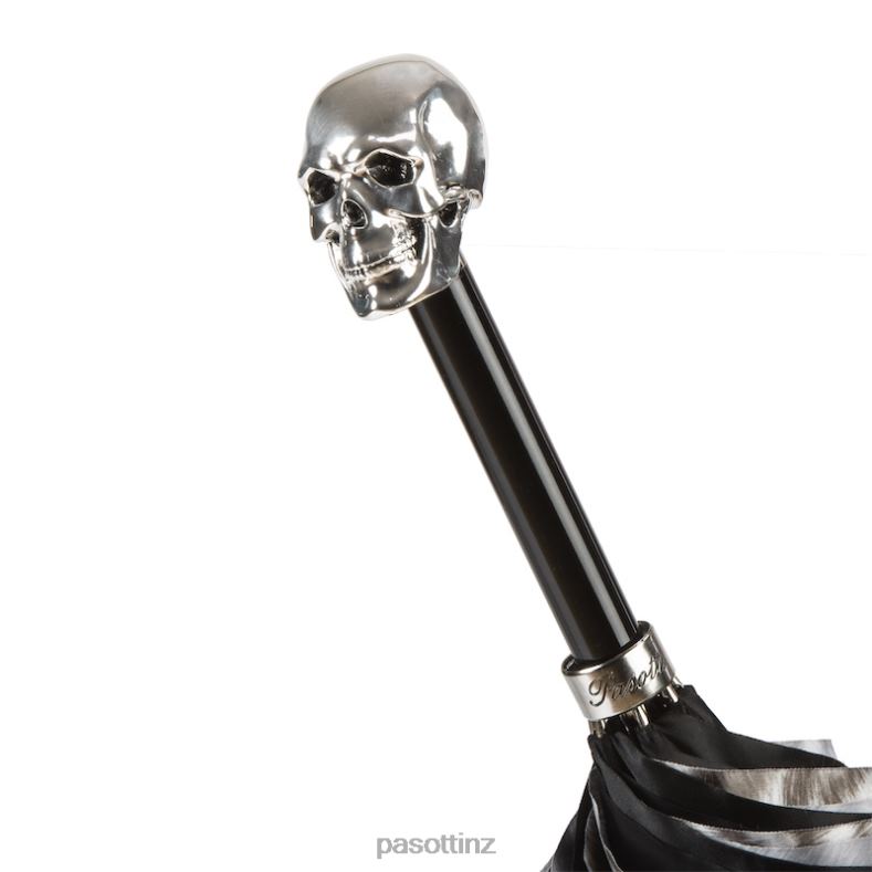 Umbrella | NZ PASOTTI Women 189N 52417-42 W33 – Black and White Animalier Umbrella with Silver Skull Handle, Double Cloth VB8JV539