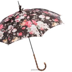 Flowered Parasol with Bamboo Handle